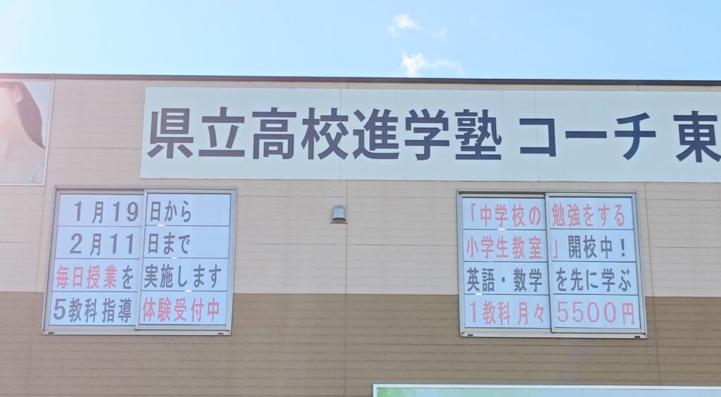 毎日授業(1月19日から2月11日まで) 2026年1月9日 最終更新日時 : 2026年1月9日 コーチ 1月19日から2月11日まで、県立入試・あゆみ診断テスト④に向けて、「毎日授業」を実施します❕5教科指導・テスト対策します。体験授業(無料、1~2週間)を受付中です。