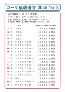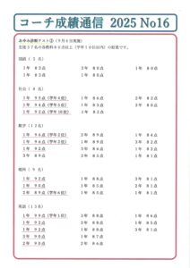 11月19日、あゆみ診断テスト③に向けての「毎日授業」が終わりました❕生徒は、この3週間程度、しっかり勉強して努力していました。3年生は、これから高校入試に向けて勉強していきます。2年生・1年生は、これからあゆみ診断テス […]